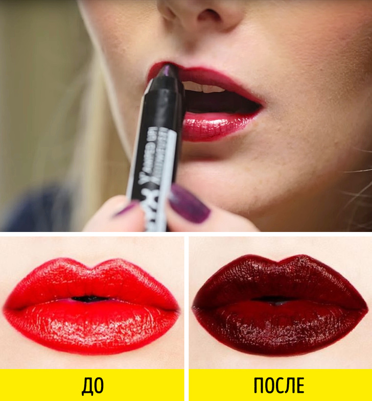 Якщо захотілося зробити свій образ більш фатальним (або сходити на тематичну вечірку, наприклад), а потрібного відтінку помади немає в косметичці, то на такий випадок випустили затемнює олівець для помади. Він зробить будь-який колір темніше на кілька відтінків. Це відмінне рішення для тих, хто не хоче купувати екстремальні варіанти, але не проти іноді поекспериментувати.