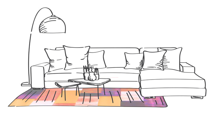 Ще один відмінний текстурний акцент — килим. Він повинен бути великим, але при цьому не приховувати всю підлогу в кімнаті. Малюнок килима повинен бути достатньо «дизайнерським», щоб привертати увагу, але при цьому не конфліктувати із загальним стилем кімнати.