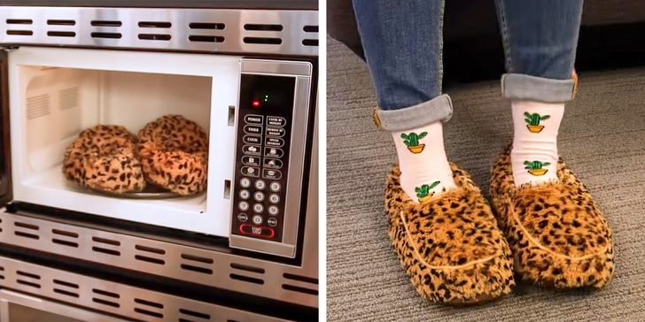 Звичайно, не кожні тапочки можна засовувати в мікрохвильовку. Ці ось заповнені зернами пшона і листям лаванди. 90 секунд підігріву — і вони вже готові укласти ваші ноги в теплі обійми.