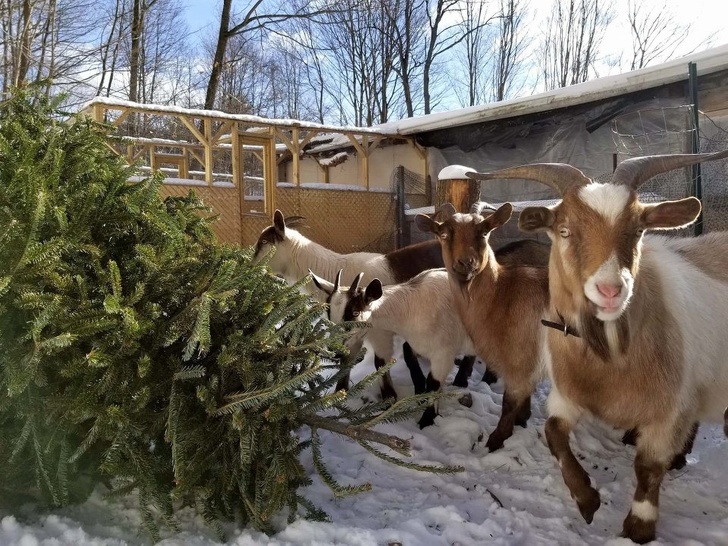 Найцікавіше в тому, що все відбувається природним способом: голки просто з'їдає ціле стадо козлів, залишаючи лише деревину. Ця ідея зараз користується великою популярністю. Треба зазначити, що обсипалися ялинки не варто викидати на вулицю. У зоопарках часто приймають хвойні дерева в якості корму для тварин.