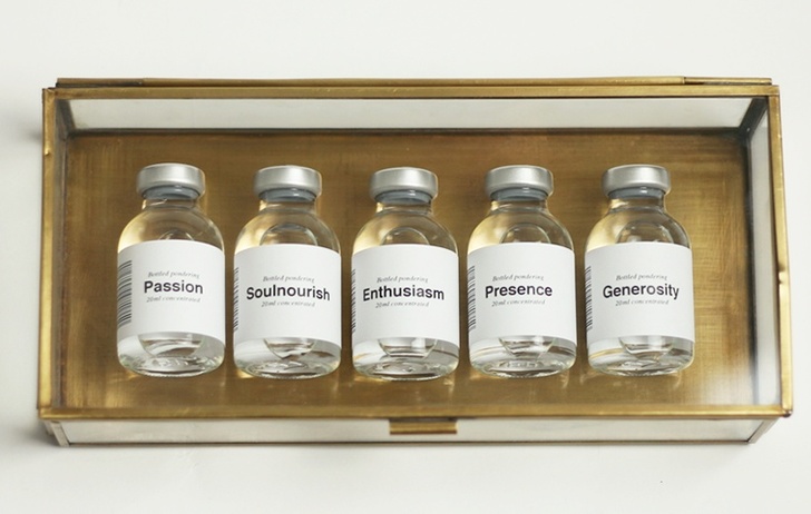 Кожна банку наповнена рідиною, пити не рекомендується. За словами творців, Flowmarket змушує людей задуматися і надихає їх стати кращими версіями самих себе. Такі баночки служать нагадуванням про те, що дійсно важливо: поставивши одну з них на чільне місце, ви регулярно будете бачити свої власні цінності.