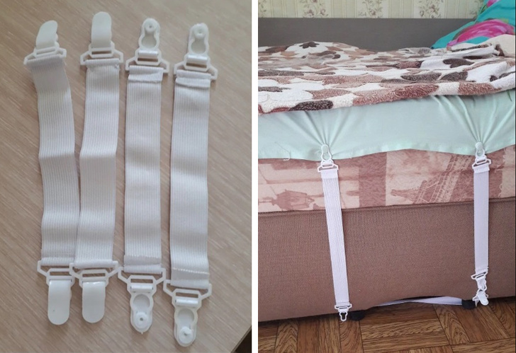 Замість того щоб переплачувати за простирадла на резинці, які майже неможливо знайти в комплекті постільної білизни і доводиться купувати окремо, можна просто придбати власники. Це знімні універсальні гумки з затиском, вони рятують від турбот і економлять бюджет.