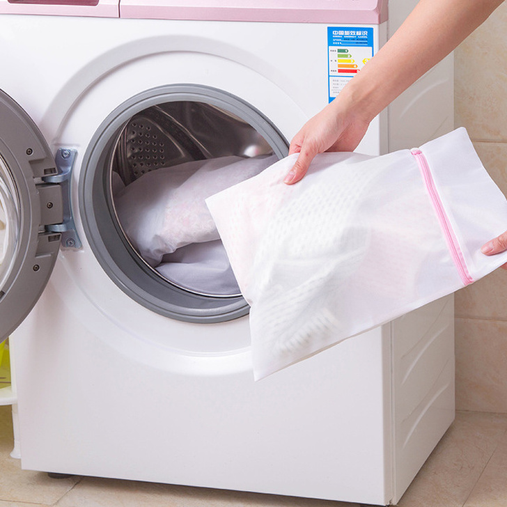 При машинному пранні речі сильно зношуються, навіть якщо вибирати делікатний або ручний режим. А всі ми знаємо, як важко буває розпрощатися з улюбленою футболкою. Спеціальний мішок захистить речі, запобігає утворення катишків і втрату форми. Існує ще мішок для білизни, завдяки якому нижню білизну можна буде оновлювати рідше звичайного.