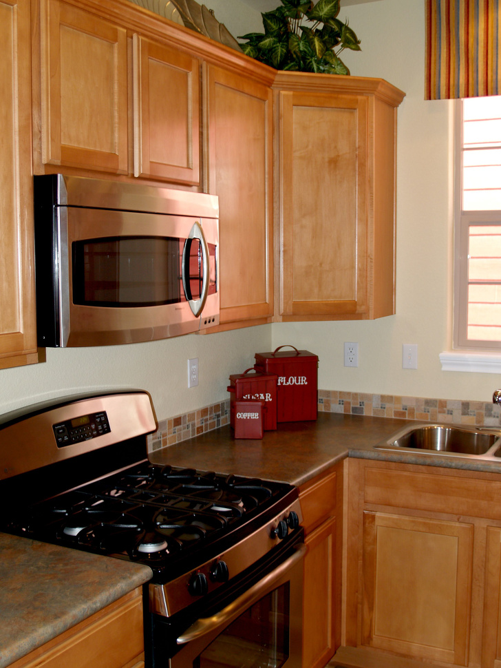 Навіть якщо подібне рішення було прийнято з метою економії простору, його плюси дуже сумнівні: зовнішній вигляд печі буде безнадійно зіпсований бризками блюд, що готуються. Мабуть, єдиним об'єктом, який раціонально розмістити над плитою, буде витяжка. Не варто нехтувати цим функціональним приладом ні заради дизайнерських рішень, ні заради економії місця.
