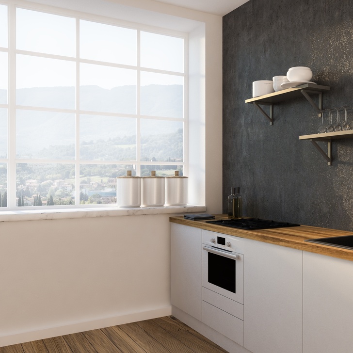 Здорово, якщо ви пішли раді з попереднього пункту і встановили витяжку, але варто мати на увазі, що навіть найпотужніша з них не позбавить робочу поверхню від забруднення. Причому очистити стільницю від плям — це ще півбіди. А ось очистити незахищену стіну за нею іноді просто неможливо.
