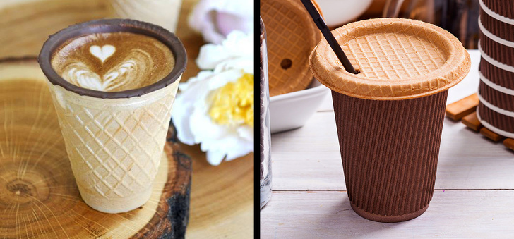 Вафельна кришка для напоїв і стаканчик, покритий термошоколадом, — для тих, хто проти пластику, але за вкусняшки