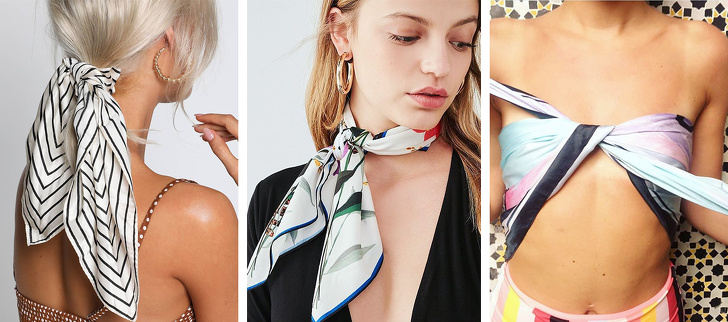 Носити шовковий хустку і виглядати молодо непросто. Але цей аксесуар відразу додає образу легкість і привертає увагу до певних частин тіла. Як стверджує Vogue, сьогодні модно використовувати хустку як прикраса для пояси, сумки, волосся, як топ або навіть як браслет на щиколотки і зап'ястя. Якщо ви віддаєте перевагу зав'язувати хустку на шиї, нехай він буде такого кольору, який поліпшить тон особи, підкреслить відтінок очей і волосся.