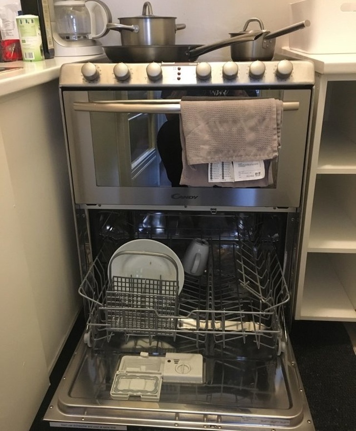 Ця піч вміщує в себе і духовку, і посудомийку. Безцінне для маленьких квартир