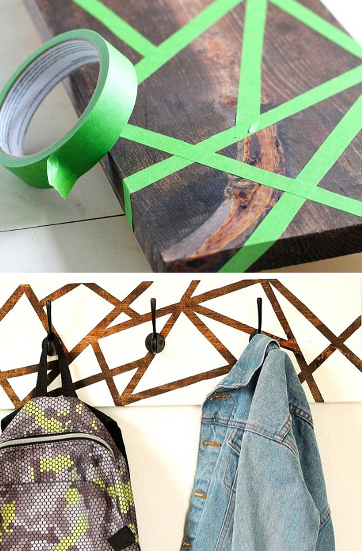 3. За допомогою ізоляційної стрічки і фарби просту дошку можна перетворити в стильну вішалку