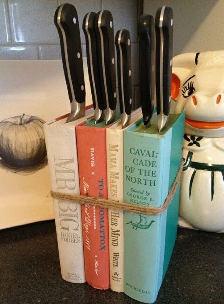 6. З старих книг можна змайструвати стильну підставку для ножів
