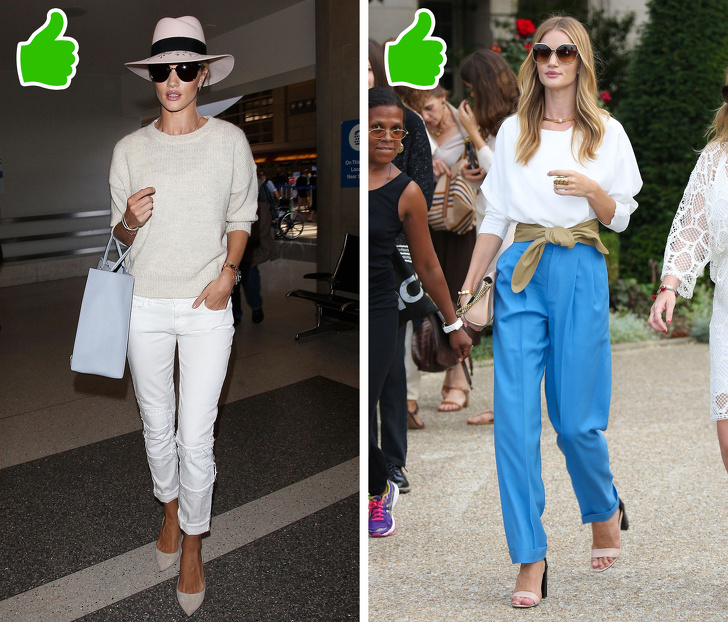 Абсолютно білосніжні образи можуть лише підкреслити ваші вади, наприклад неідеальний колір зубів, тому важливо вміти поєднувати білий з іншими квітами. Якщо хочете створити повністю «світлий» образ, використовуйте лише один елемент одягу чисто-білого кольору, а решта виберіть інших світлих відтінків бежевого, блакитного, рожевого.
