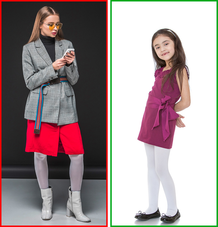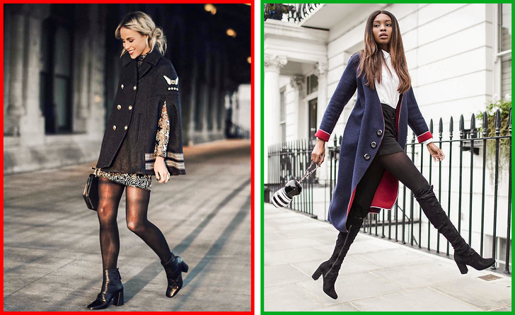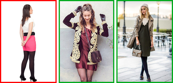 Тонкі колготки з міні-спідницею і короткою курткою в прохолодну погоду виглядають дуже сумно — оточуючі не захоплюються вашою загартуванням, а починають переживати за ваше здоров'я. У холодні сезони колготки і коротку спідницю поєднуйте з довгим пальто, а в приміщенні накиньте подовжений кардиган, тим більше багатошаровість досі в тренді.