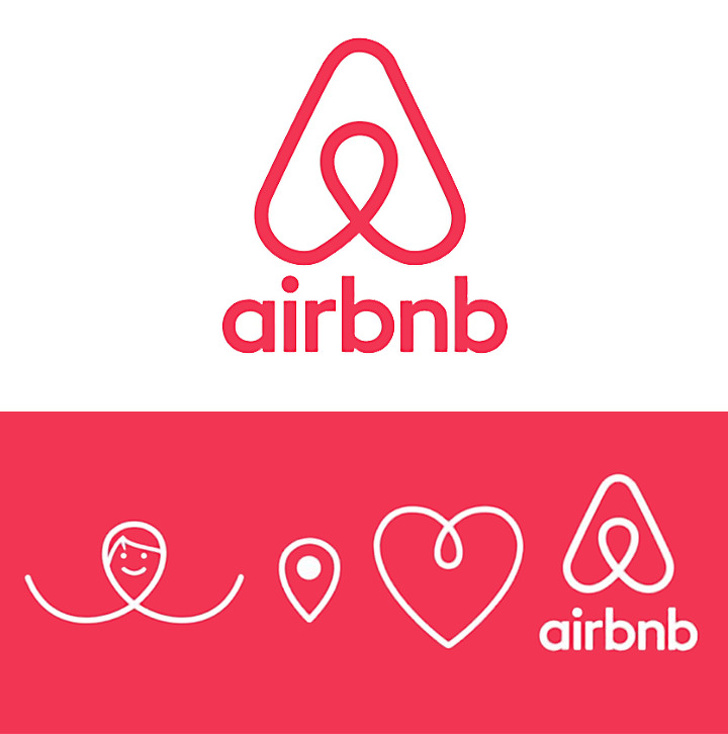Інтернет-сервіс Airbnb, за допомогою якого можна знайти житло для оренди по всьому світу, вибрав дуже дивний логотип, який чимось нагадує скріпку. Однак емблема має набагато більш глибокий зміст, чим може здатися на перший погляд. Вона містить в собі цілих 4 елемента: голову чоловічка, яка позначає користувача на сайті; значок геолокаціі, що позначає місце, де знаходиться житло; серце — символ кохання; і всі ці символи об'єднані в літері А — Airbnb.