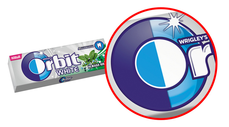 Якщо придивитися до логотипу на упаковці гумки Orbit, можна побачити, що заголовна буква розділена на світлу і темну частини, а на задньому фоні можна розгледіти стилізоване зображення орбіти. Таким чином, стає зрозуміло, що буква тут символізує день і ніч, тобто орбітальне рух Землі навколо Сонця.