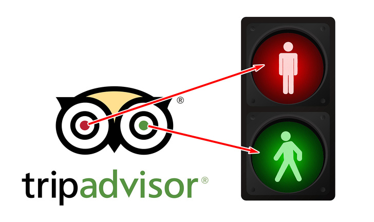 Американський сайт TripAdvisor дозволяє мандрівникам зі всього світу вибрати, в якому готелі краще зупинитися, в якому ресторані перекусити, послугами якої авіакомпанії скористатися і навіть якусь пам'ятку відвідати — все завдяки відгуками інших відвідувачів. Логотип TripAdvisor виконаний у вигляді сови, яка уособлює мудрість і знання, а ось її очі символізують вибір, який робить мандрівник: зелений колір — варто їхати, а червоний — безумовно ні.