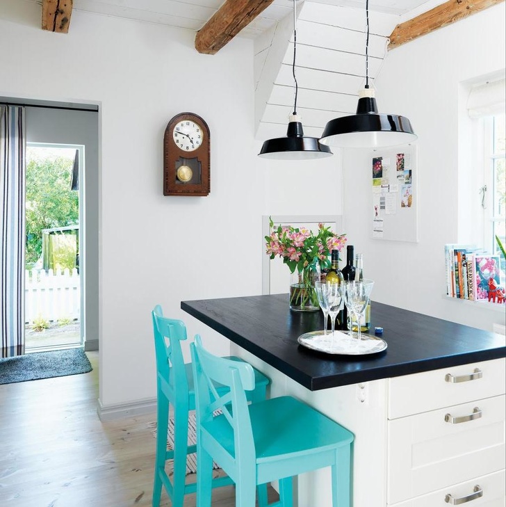Бірюзовий колір стільців не тільки освіжає, але і чудово поєднується і з темною, і зі світлою гамою.