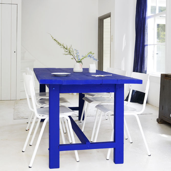 Насичений ультрамарин надає білій кухні літній, морське настрій. Інші приклади використання цього кольору в інтер'єрі можна знайти тут.
