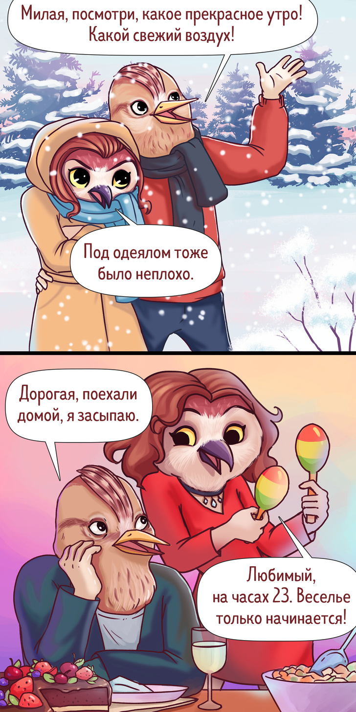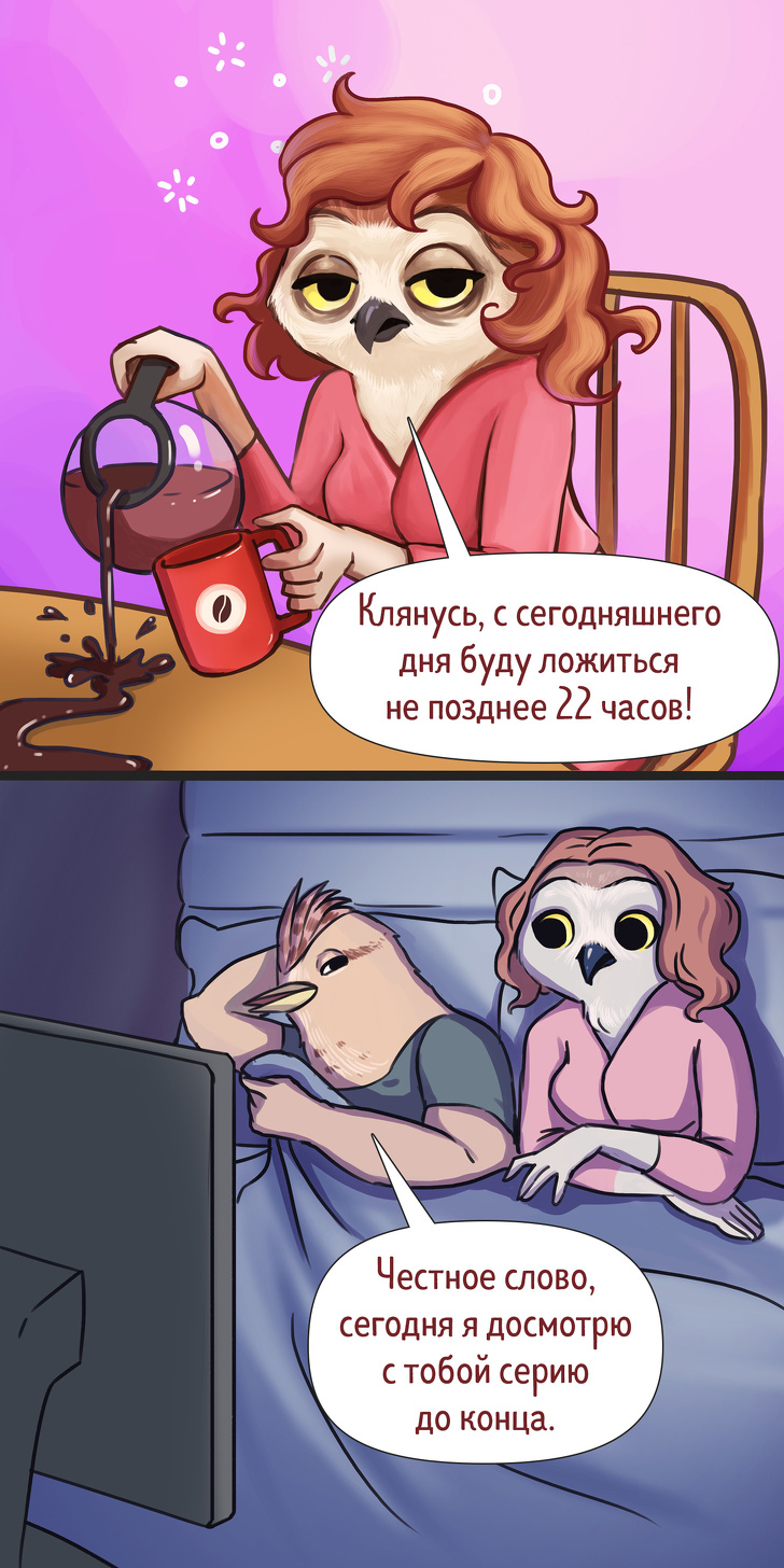 Чесний комікс про труднощі життя сов і жайворонків у сучасному світі