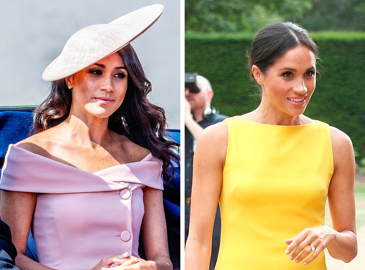 У герцогині Сассекской не надто виражені стегна і невелика груди, але вона вміє підбирати одяг так, щоб приховати всі недоліки фігури. Наприклад, сукня з додатковою накладкою збоку, яке візуально робить стегна ширше, або двобортне плаття, яке, знову ж таки, візуально робить груди трохи більше.