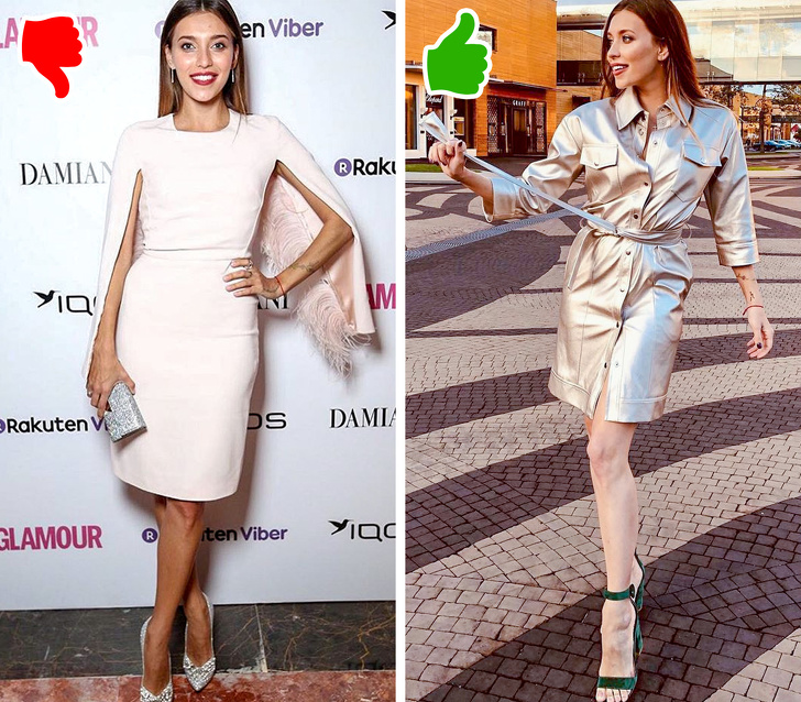Накладні кишені на сорочках, сукнях, куртках і жакетах, розташовані у верхній частині, додають об'єм саме там, де це потрібно, в області грудей. За рахунок цього вона візуально здається більше. При цьому кишені повинні бути досить великими, тоді й ефект буде помітніше. Однак це не означає, що в них потрібно складати ключі, телефон, помаду і ще з десяток різних речей.