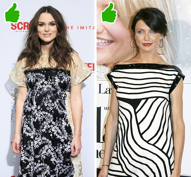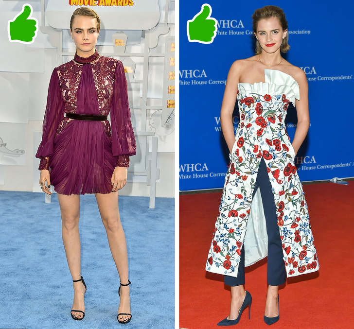 Будь-яка горизонталь в одязі візуально розширює, що далеко не завжди погано. Горизонтальна смужка в принті або квіткові орнаменти, які розташовані знову ж по горизонталі в області грудей, відрізні лінії в крої, декоративні шви — все це буде додавати об'єм там, де вам потрібно. Великі деталі в принті теж мають властивість повнити, тому таку особливість можна сміливо використовувати для додання маленької обсягу грудей. Це стосується не тільки великих квітів і елементів, але і широкої вертикальної смужки в принті.