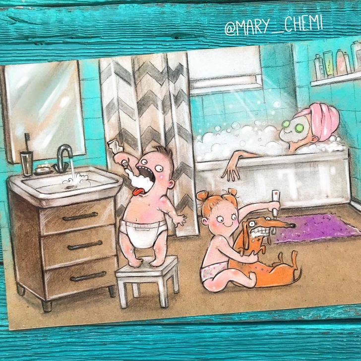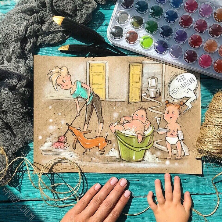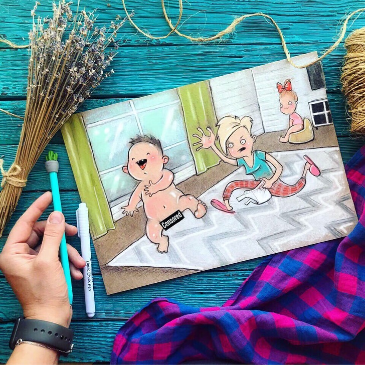 Мама 2 дітей продовжує малювати свої будні. Виходить занадто життєво