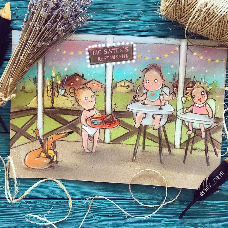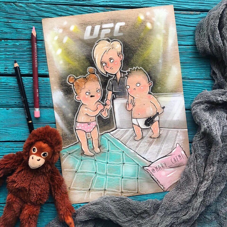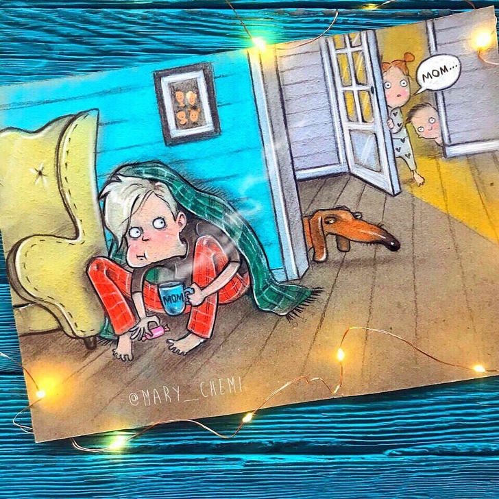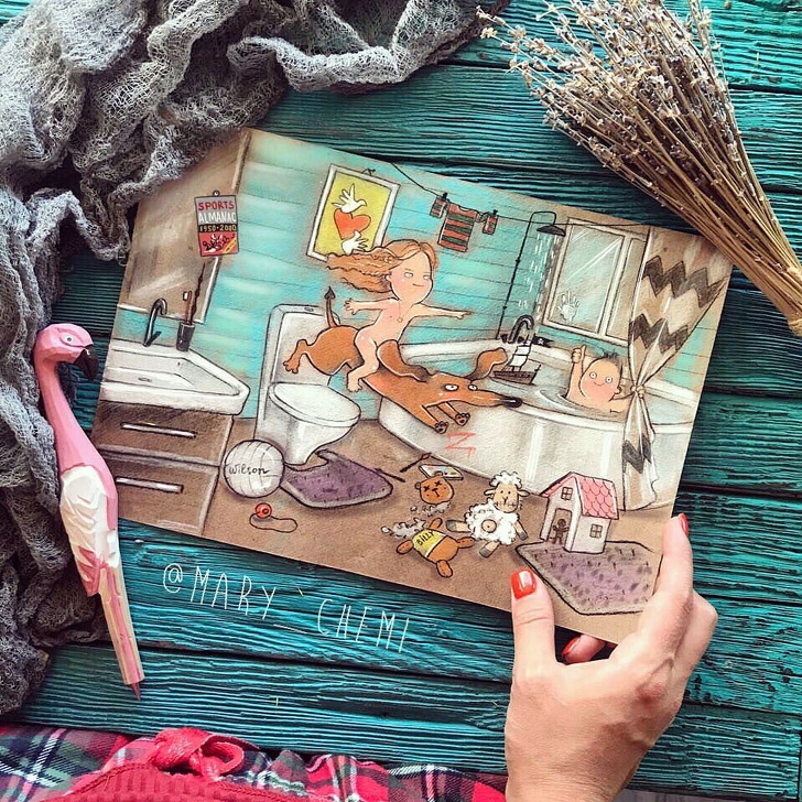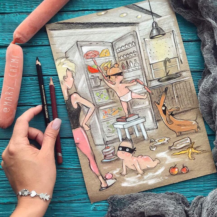 Марія Горбунова — талановита російська художниця і молода мама. Зараз увагу жінки зосереджена на вихованні дочки Світи і сина Юрка, тому натхненням для творчості стали її діти. Вони головні герої цілої серії ілюстрацій в инстаграме художниці під хештегом #мамскиеисториивкартинках. Ці яскраві роботи полюбилися тисячам людей. І, здається, ми знаємо секрет: Марія не прикидається ідеальною, кожен її малюнок максимально щирий і добрий.