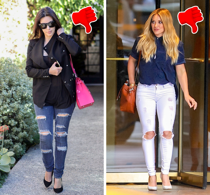 Рвані джинси сьогодні можна зустріти на кожному кроці. І дівчата, які стежать за модою, не відмовляють собі в задоволенні носити цей елемент гардеробу. Але про зручність в цьому випадку мова не йде. Джинси з «дизайнерськими» дірками можуть порватися ще сильніше, якщо отвори зроблені на колінах. А ще за них легко зачепитися ступень, коли одягаєш.