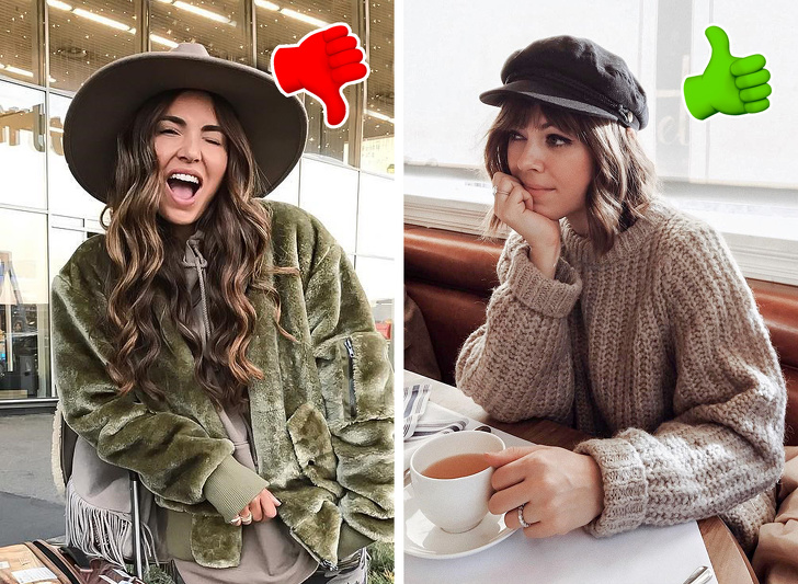 Якщо зовсім відмовлятися від капелюхів вам не хочеться, вибирайте невеликі моделі з вузькими полями. Також важливо, щоб вони стійко сиділи на голові. А замінити капелюх можна симпатичним беретом, з яким точно буде менше проблем, при цьому виглядає він не менш ефектно.
