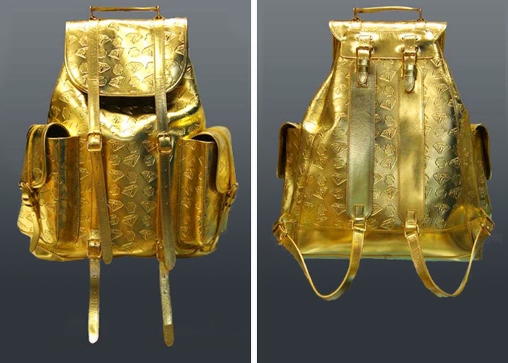 Золоті рюкзаки з тисненням алмазного малюнка були представлені в магазині Billionaire Boys Club лише в кількості чотирьох примірників і продавалися за ціною $ 1 650 за штуку. На даний момент вони, судячи з усього, вже розпродані і десь по світу ходять чотири щасливих володаря унікальних сумок.