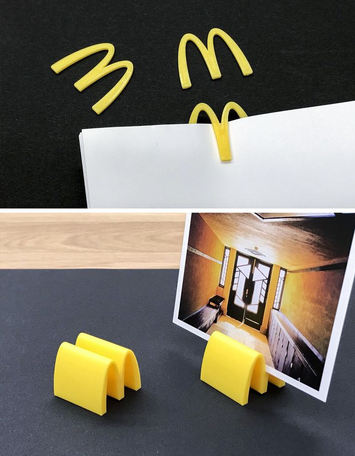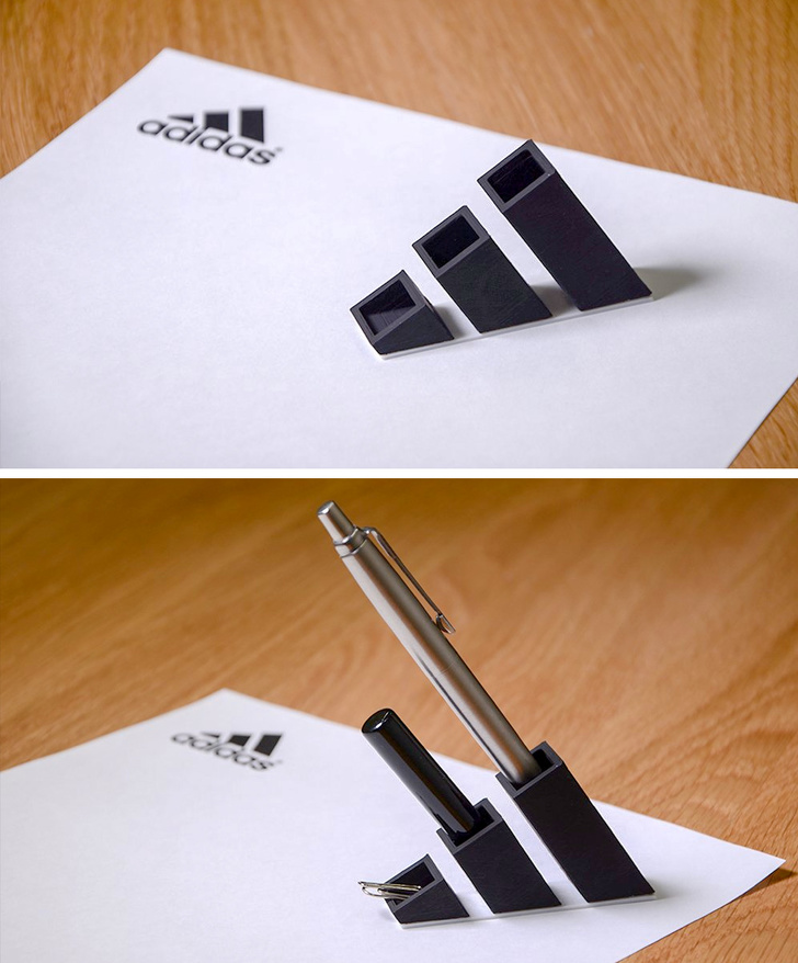 Японський дизайнер Таку Омура (Taku Omura) скромно працював, придумуючи дверні ручки, підставки для парасольок і різні канцелярські дрібниці. Але став відомий широкій публіці тільки тоді, коли придумав брати логотипи популярних брендів та робити з них канцелярські дрібниці. Виявилося, що роздрукованої на 3D-принтері емблемою " Nike зручно розкривати конверти, а 3 смужки Adidas — це відмінна підставка для ручок. Деяким логотипів він знайшов досить несподіване застосування.