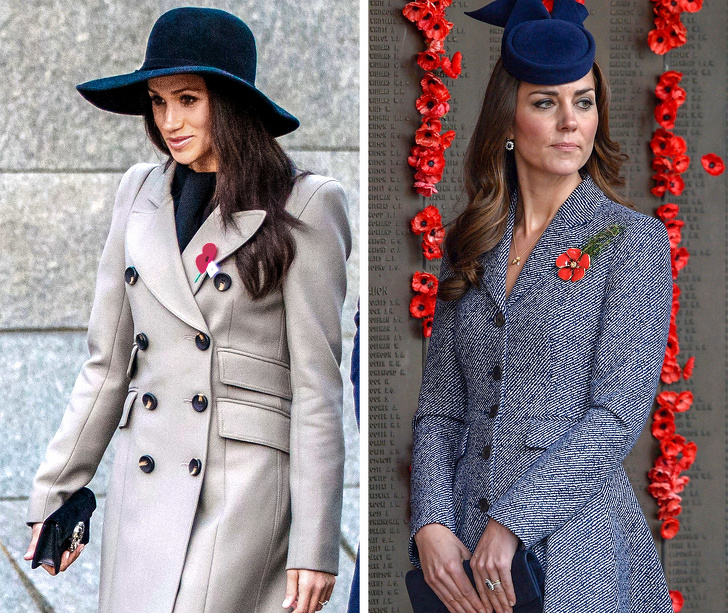 Вишукані капелюхи і строгі лінії — візитна картка обох герцогинь. Такий елемент гардеробу традиційний для членів королівської сім'ї: мало який образ Єлизавети II обходиться без витонченої капелюшки. Молоде покоління монаршої родини теж не відмовляється від традиційних головних уборів. Але хто сказав, що капелюхи — привілей виключно корольов? Сміливо додавайте даний аксесуар в свої образи, підбираючи капелюшки під сукню в літній час або під суворе пальто в міжсезоння.
