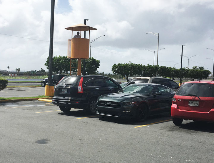 19. Замість камери безпеки на цій парковці Walmart в Пуерто-Ріко використовується сторожова вежа з охоронцем