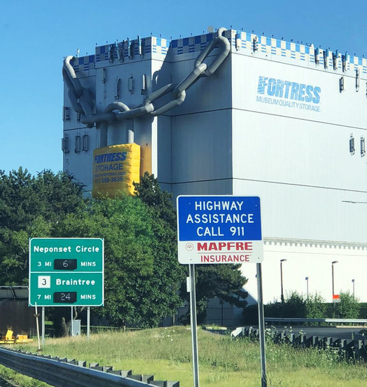 1. Надувна ланцюг із замком висить на будинку, в якому надають площі під склад-сховище