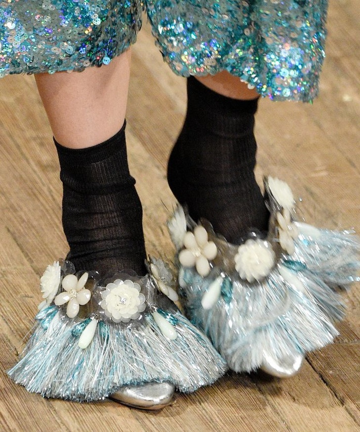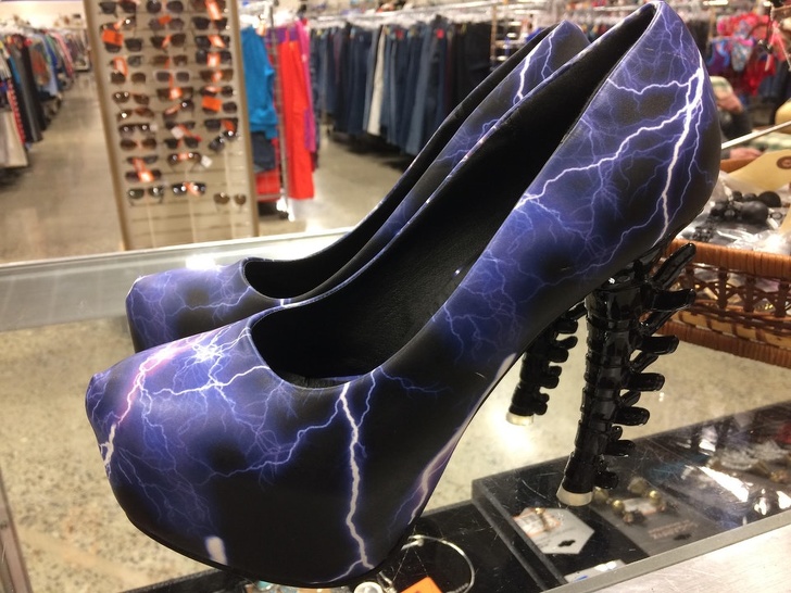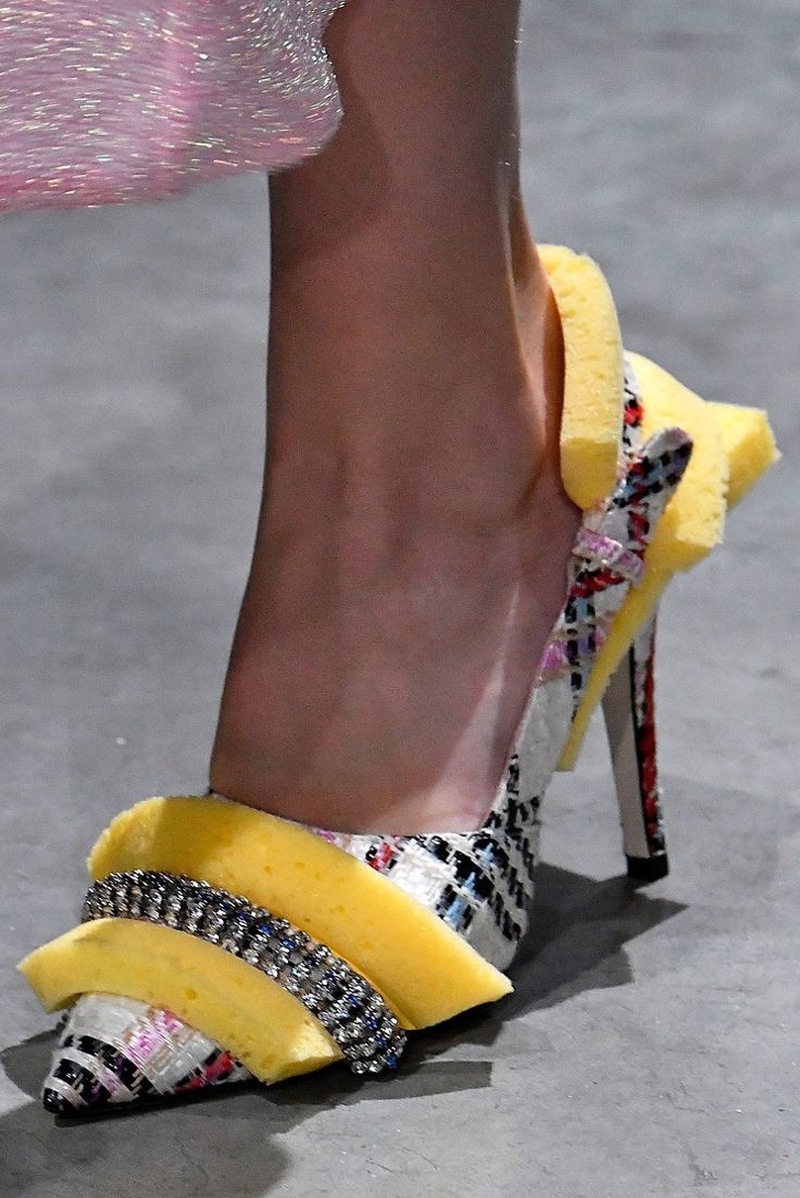 Модні дизайнери регулярно створюють взуття, яка викликає більше питань, ніж тема глобального потепління. Наприклад, туфлі з посмішкою Чеширського Кота або акулячим оскалом, підошва в кілька ярусів і ласти на підборах, копитця єдинорога і взуття, з якої взагалі неясно — носити її або з'їсти.
