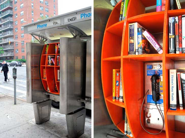 Американський архітектор Джон Локк придумав спеціальні полки, які кріпляться поряд з громадським телефоном і виконують роль книжкового фримаркета.
