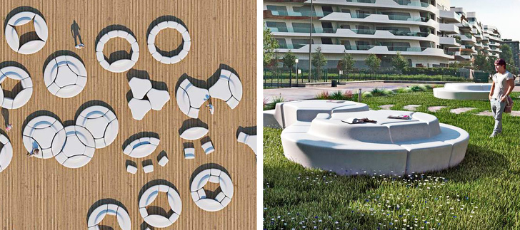 Місцеві дизайнери пропонують городянам автономні модулі для вуличних меблів, які можна комбінувати, як тільки душа забажає. З таких блоків можна зібрати круглу лавку і навіть відгородити місце для велопарковки або майбутньої клумби.