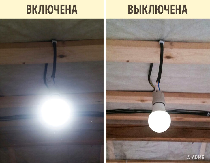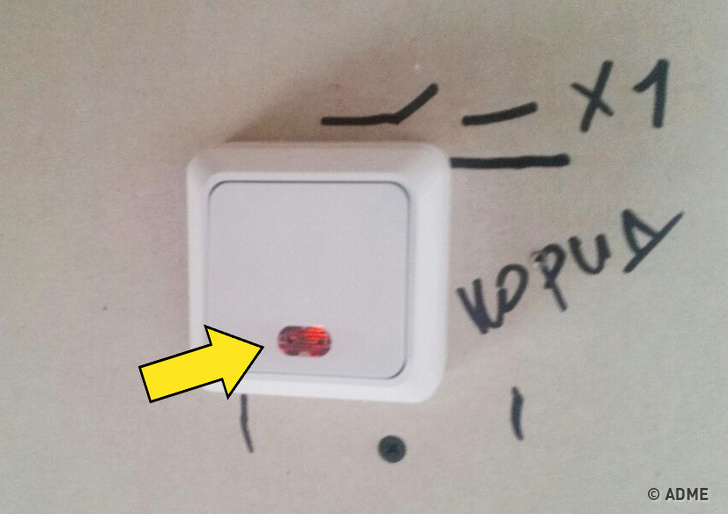 Абсолютно випадково ми поставили в коридор вимикач зі світловим індикатором. Коли ми закрутили енергозберігаючу лампочку, виявилося, що навіть у вимкненому стані вона горить тьмяним світлом. Світло зовсім слабкий, не дратує і не заважає спати (в прилеглій кімнаті), зате вночі, якщо знадобиться вийти, не потрібно блукати в пітьмі. Особливо це зручно тим, хто боїться темряви.