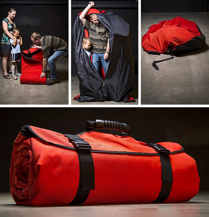 Спальний мішок, зроблений з того ж матеріалу, що і куленепробивні жилети, до того ж він розкладається до розмірів двоспальним ліжка і вміщає в себе двох дорослих та однієї дитини. При цьому задня частина мішка зроблена з дихаючого нейлону, так що в ньому не буде душно.