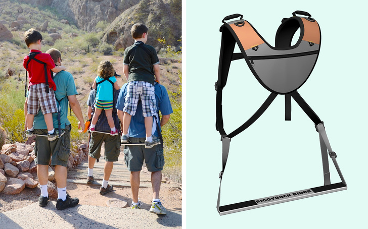 Старші діти не потребують візку, але і вони іноді втомлюються і просяться на руки. Спеціально для таких випадків була придумана свого роду шлея для батьків, яка дозволяє зручно і безпечно нести дитини на спині.