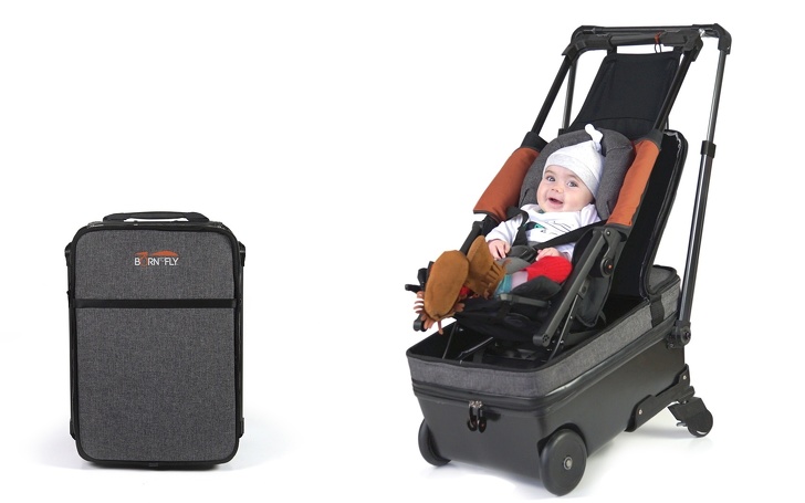 Цей незвичайний валізу придумала сімейна пара, якій набридло одночасно котити коляску і нести багаж. Розміри валізи не перевищують установлених для ручної поклажі норм, а завдяки вбудованому крісла в нього, крім речей, можна помістити і свого малюка.