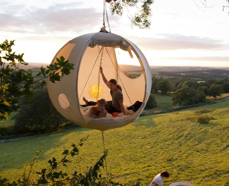 Якщо місце, яке ви обрали для відпочинку, дозволяє підвісити намет на дереві замість того, щоб встановлювати на землі, то чому б не спробувати цей варіант? У всякому разі, виглядає така палатка дуже затишно.