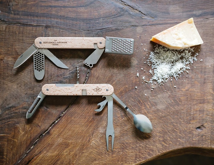 Якщо ви любите не тільки є, але і готувати на природі, то можна обзавестися ось таким складним ножем. У ньому є все, включаючи овощечистку, тертку для сиру та прес для часнику.