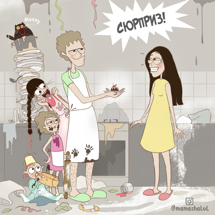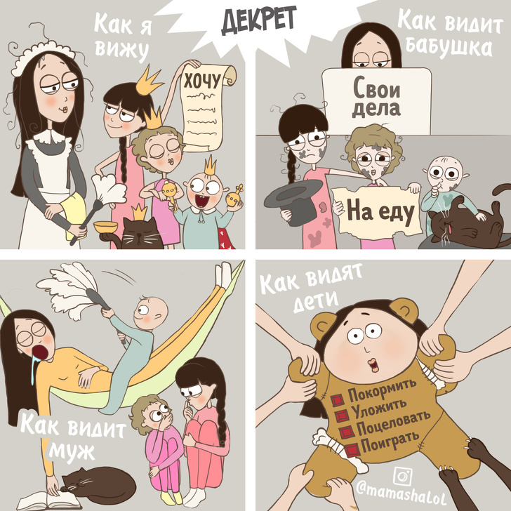 У москвички Олександри 3 дітей: Амелія, Василина і Діма, і вона, за її власним визнанням, знаходиться у вічному декреті. Турбота про дітей забирає більшу частину часу, однак Саша знаходить час не тільки для роботи (вона фрілансер), але і на ведення сторінки в инстаграме з кумедною назвою mamashalol. Вона малює комікси про свою сім'ю, і це не звичайні «мамские» комікси, а дотепні замальовки про будні багатодітної матері. У Саші є художня освіта і вроджене почуття гумору, а ще вона просто красуня.