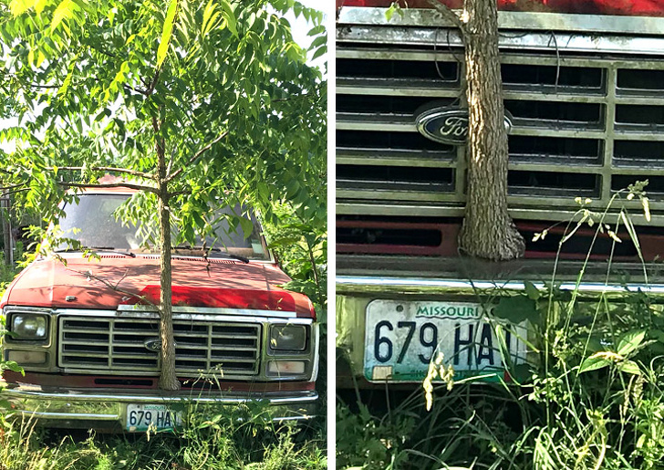 28. «Побачив пікап мого друга, який він припаркував 10 років тому. За цей час крізь отвір в бампері виросло дерево»