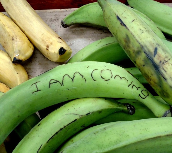 19. «На місцевому ринку побачив дивну напис на банані. Це схоже на початок якогось фільму жахів»