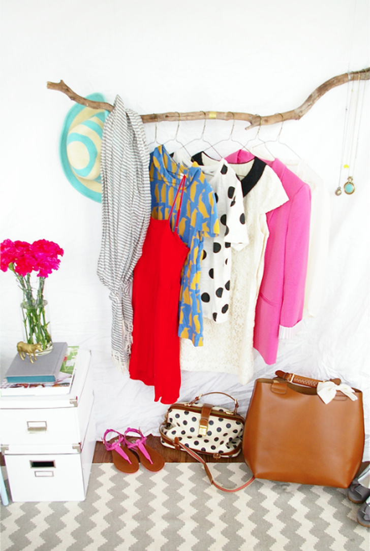 Навіщо ховати яскравий одяг у шафу? Нехай вона прикрашає кімнату, а саморобна дерев'яна вішалка додасть інтер'єру чарівності заміського будинку.