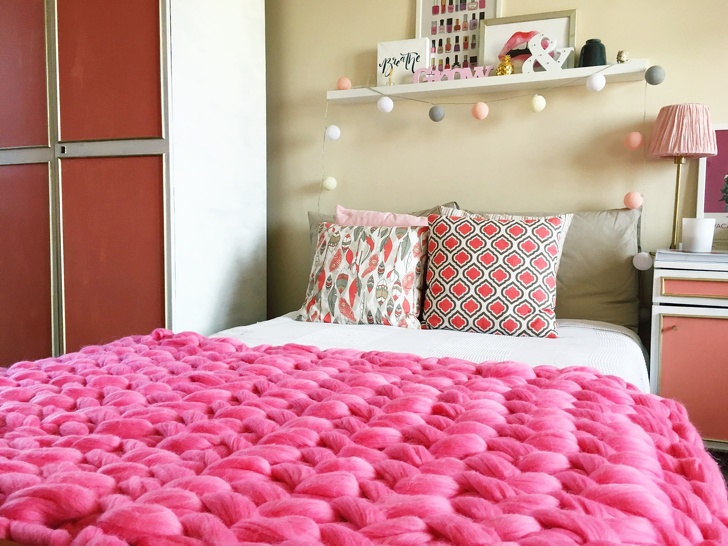 Плед з товстої пряжі — стильна і затишна деталь інтер'єру, до того ж він дуже теплий і приємний на дотик. А головне — його легко зв'язати своїми руками, тобто буквально руками, а не за допомогою спиць.