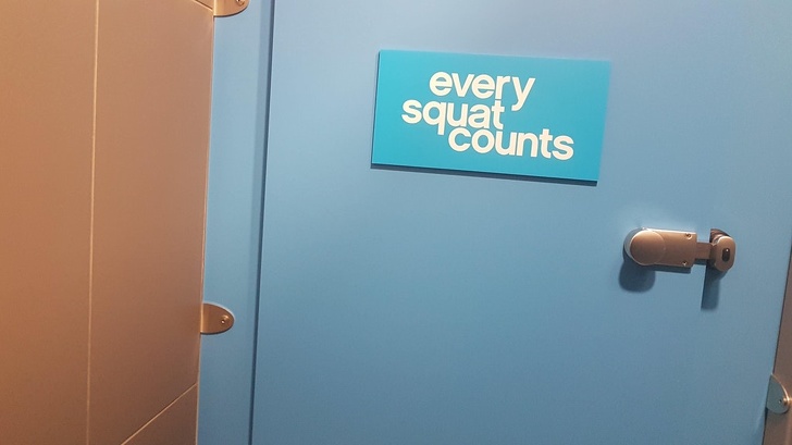 Напис на дверях туалету в спортзалі: «Кожне присідання має значення»