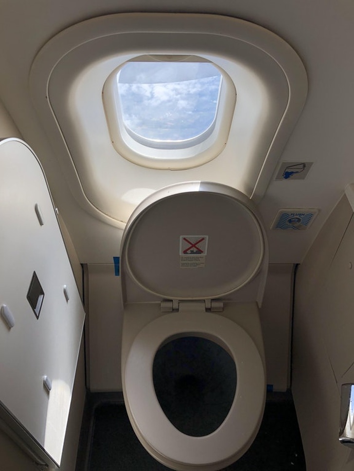 У туалеті літака встановлено ілюмінатор. Щоб ті, хто боїться замкнутого простору, могли розслабитися